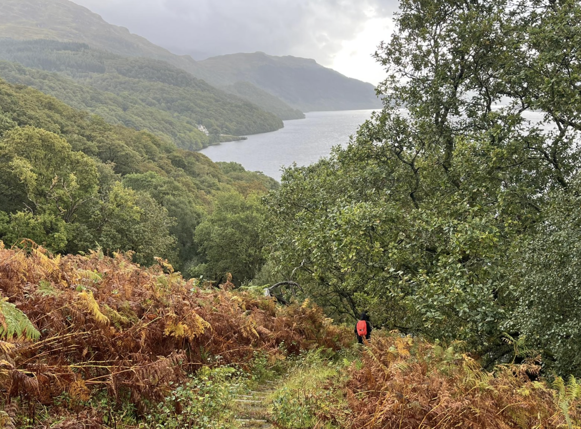 Our first walk started at Rowardennan, passing Ardess with its quiet ruins. The landscape was beautiful, but inside I felt unsettled, tired, and cold. And when we stopped for lunch — supermarket sandwiches, after I’d paid so much for the trip — I couldn’t help but laugh a little bitterly. Really? This is how it starts?